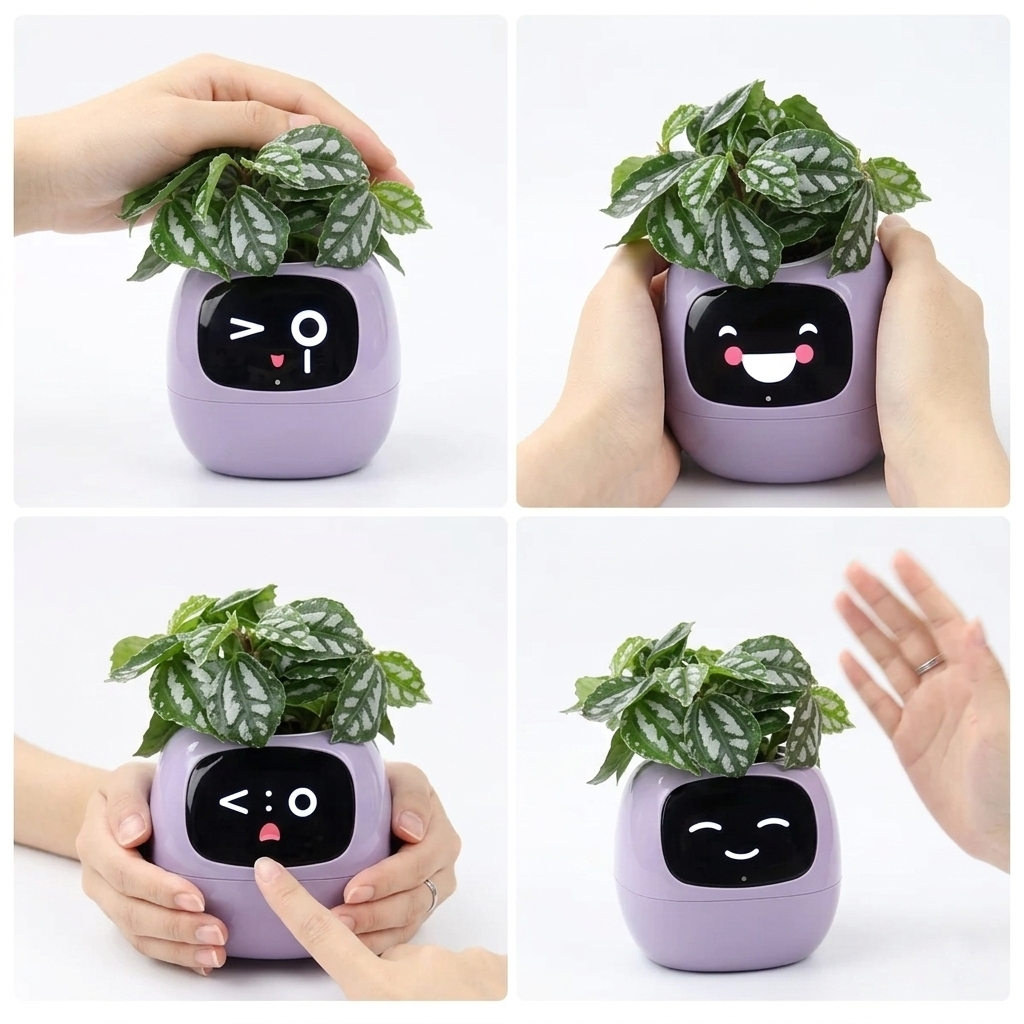 Le Pot Connecté FloBot Émotion ne se contente pas de surveiller votre plante : il interagit avec vous. Grâce à la reconnaissance de 5 gestes différents, vous pouvez déclencher des réactions expressives et amusantes en tapotant le pot, en le caressant ou en approchant votre main de son écran. Chaque geste provoque une réaction unique, rendant chaque interaction imprévisible et attachante. C'est bien plus qu'une jardinière : c'est un véritable compagnon de bureau qui anime votre quotidien avec une touche de magie et de légèreté.