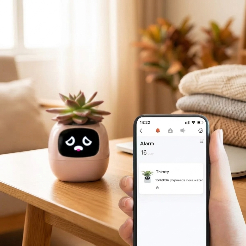 Le Pot Connecté FloBot Émotion est la jardinière intelligente qui donne vie à vos plantes d'intérieur. Grâce à ses 7 capteurs intégrés et sa puce IA, il surveille en permanence l'humidité du sol, le niveau de luminosité et la santé générale de votre plante, puis exprime son état à travers 49 expressions animées adorables affichées sur son écran intégré. Connecté à l'application Tuya Smart Life, il vous envoie des notifications en temps réel pour ne jamais oublier d'arroser votre plante. Compact, coloré et interactif, il est à la fois un outil de jardinage intelligent et une décoration unique qui anime votre intérieur.