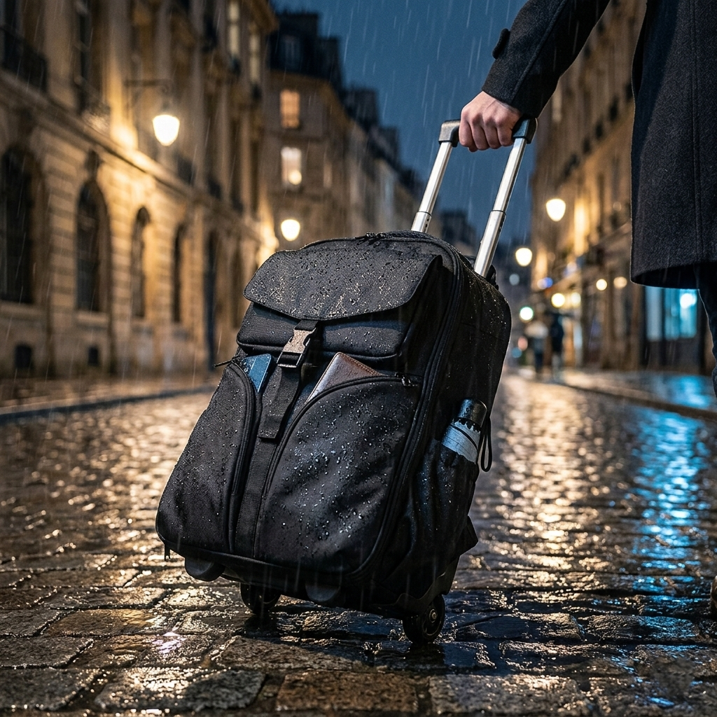Un sac de voyage, c'est un investissement. On lui fait traverser des aéroports, des rues pavées, des halls d'hôtel, des couloirs bondés – parfois sous la pluie. Le BAGLIO MinimaX™ RollAir a été construit pour encaisser tout ça sans fléchir. Son tissu Oxford traité imperméable résiste aux éclaboussures et à la pluie légère – vos affaires restent au sec. Sa structure en polyester haute densité maintient la forme du sac même chargé à pleine capacité sans s'affaisser. Sa tige télescopique en alliage aluminium encaisse des milliers d'extensions sans se voiler ni se bloquer. Ses roues en caoutchouc double roulent silencieusement sur tous les types de sol – carrelage, béton, asphalte – sans s'user rapidement. C'est un sac qui vous accompagnera des années, pas des mois.