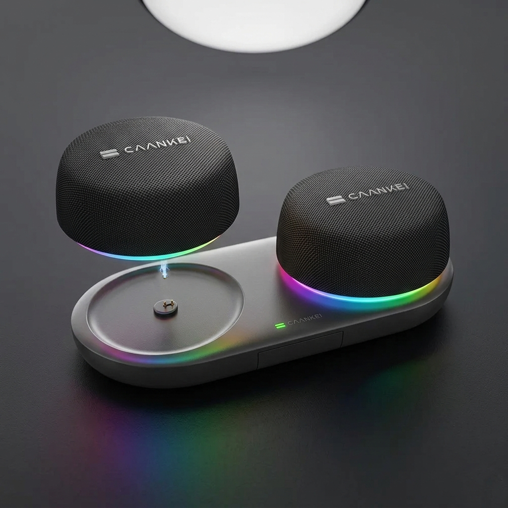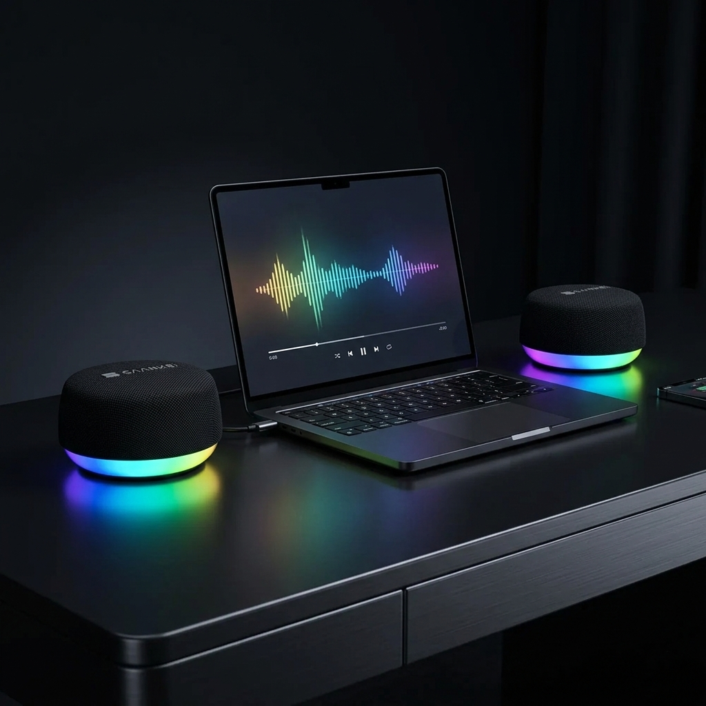 Vous avez vécu des années avec le son plat et creux de votre laptop ou d'une enceinte mono portable. Avec le TwinGlow Pro, tout change. Deux modules indépendants. Canal gauche à gauche. Canal droit à droite. Un vrai son stéréo TWS haute résolution qui remplit la pièce, crée une scène sonore large et vous fait redécouvrir chaque morceau comme si vous l'entendiez pour la première fois. La basse est présente, les aigus sont clairs, les médiums sont chauds – le spectre complet sans coupure, sans compression, sans compromis. Posez-les de part et d'autre de votre écran et laissez la musique vous envelopper.